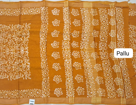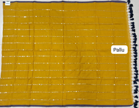 Mustard Yellow Mulmul Cotton Saree