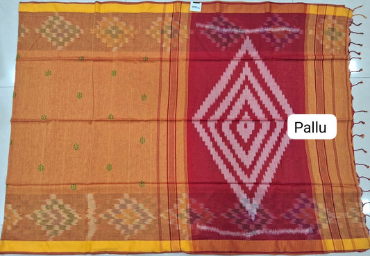 Mustard Yellow Linen Cotton Saree