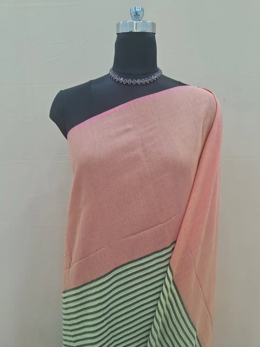 Wine Red and Blush Pink Striped Mulmul Cotton Saree