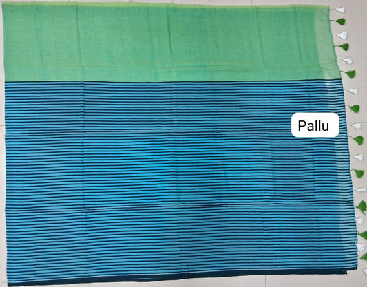 Caribbean Blue Mulmul Cotton Saree