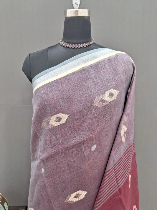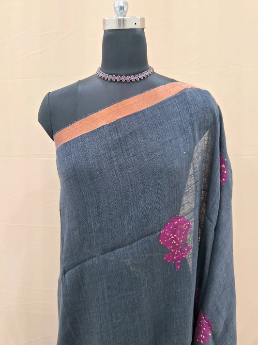 Elegant Dark Grey Khadi Linen Saree