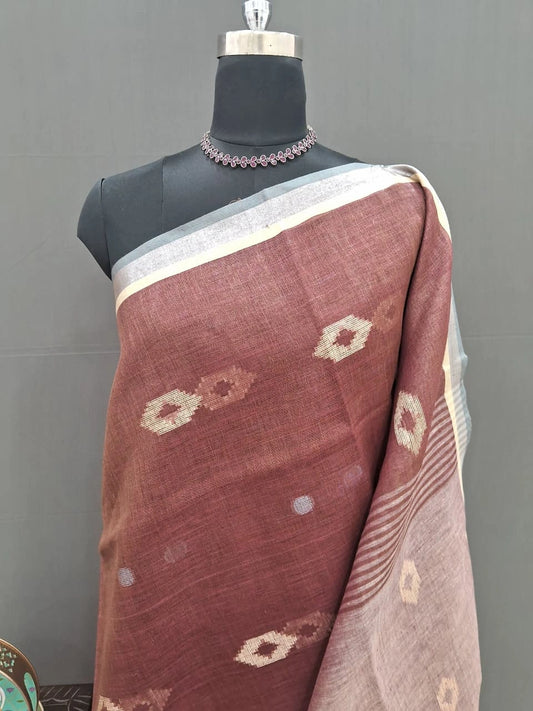 Coffee Brown Pure Linen Saree