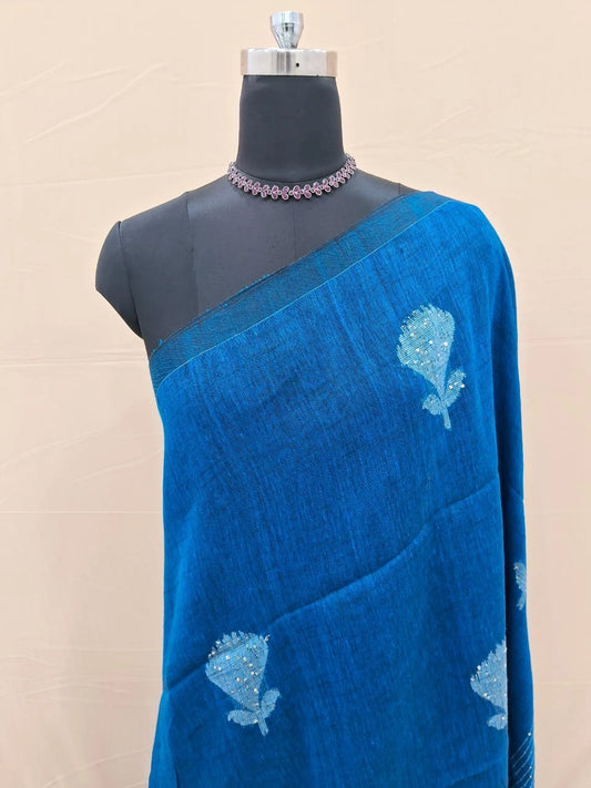 Royal Blue Khadhi Linen Saree