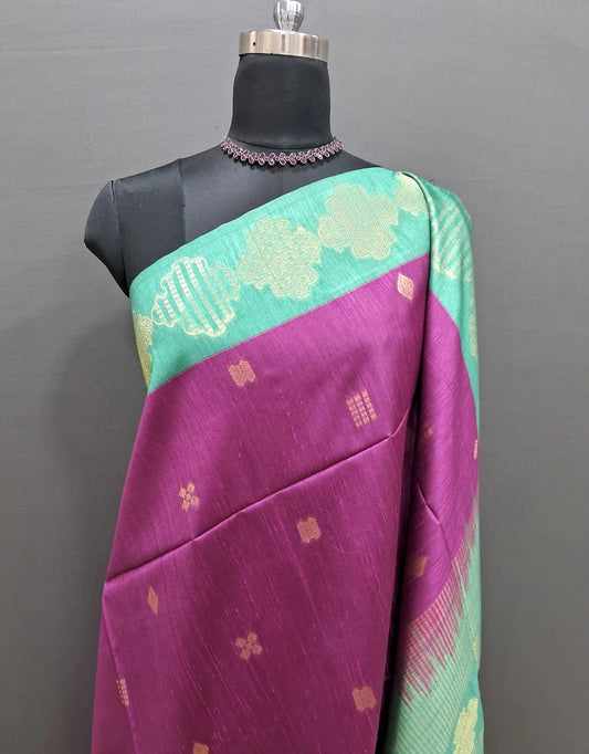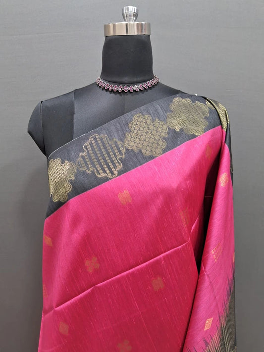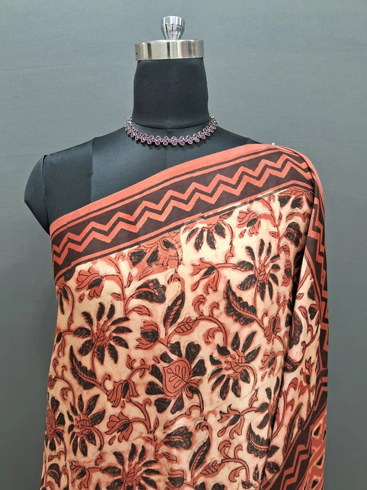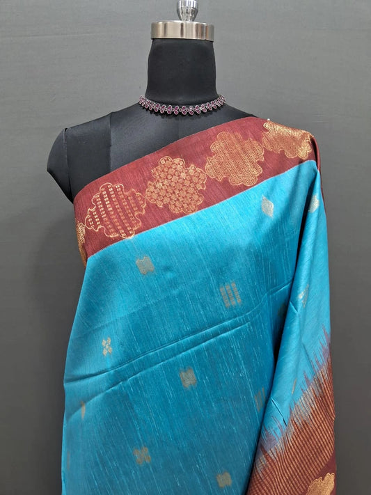Sand Brown Floral Tussar Saree with red and yellow embroidered floral