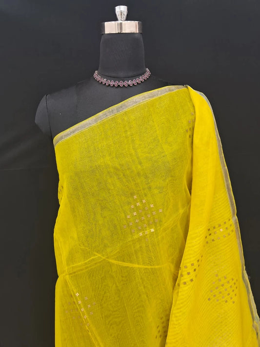 Premium Mustard Yellow Pure Maheshwari Silk Saree