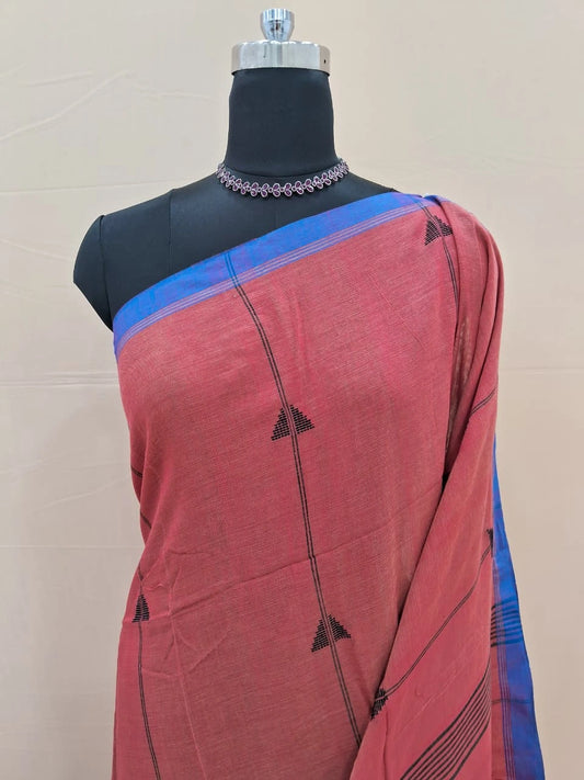 Dark Peach Khadhi Cotton Saree