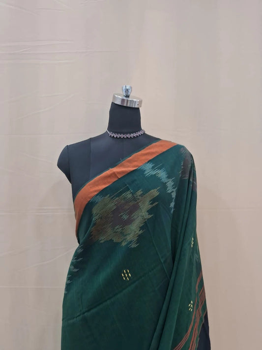 Bottle Green Khadhi Cotton Saree
