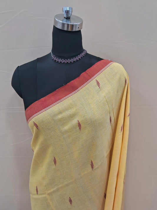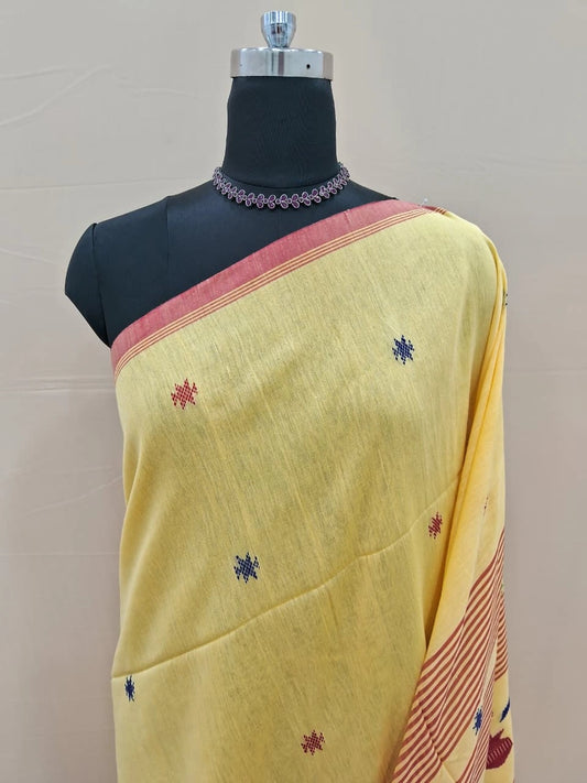 - Handloom Craftsmanship: Each saree carries the beauty of handspun threads.