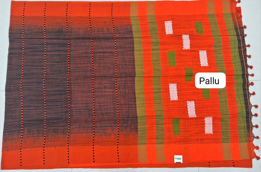 Black and Orange shaded Khadhi Cotton Saree