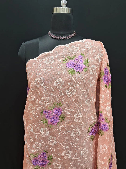 Embroidered Light Peach Kota Saree