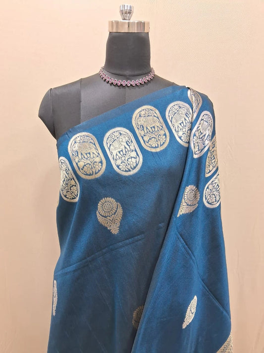 Teal Blue Matka Silk Saree