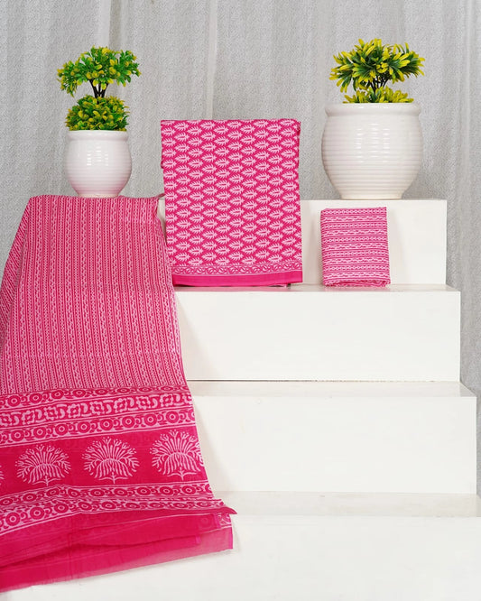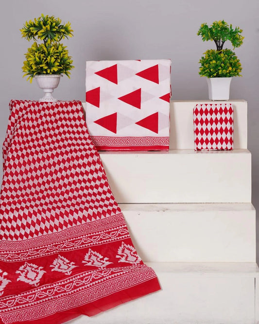 Teal Blue with Green, Red ajrakh printed cotton dress material