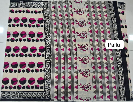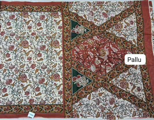 Cream Mulmul Cotton Saree