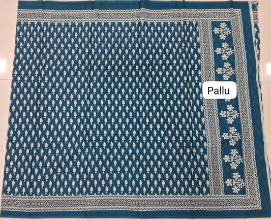 Blue Mulmul Cotton Saree