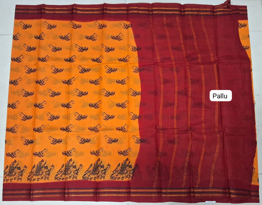 Sold outMango Yellow Sungudi Cotton Saree