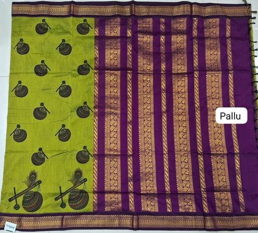Parrot Green Kalyani Cotton Saree