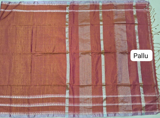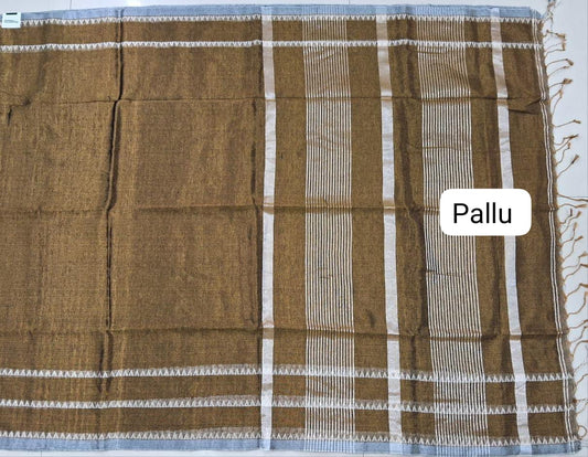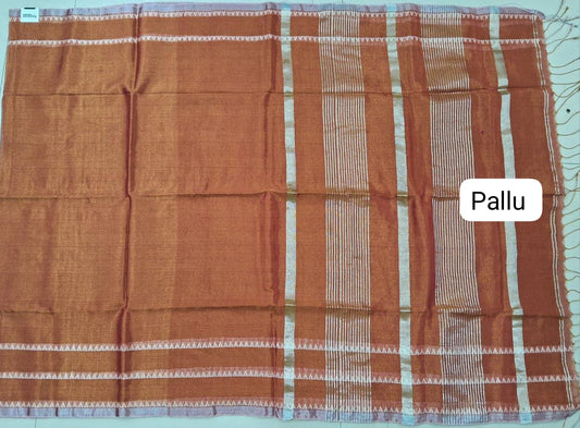 Bronze tone Khadhi Tissue Plain Linen Saree