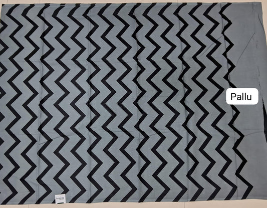 Dark Grey Mulmul Cotton Saree