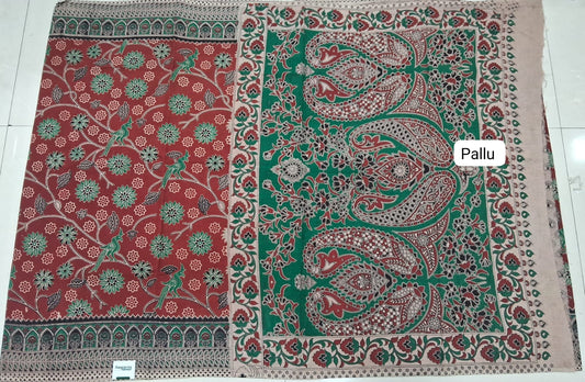 Brick Red kalamkari Cotton Saree