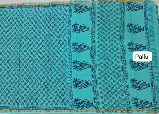 Sold outAqua Blue Mulmul Zari Cotton Saree