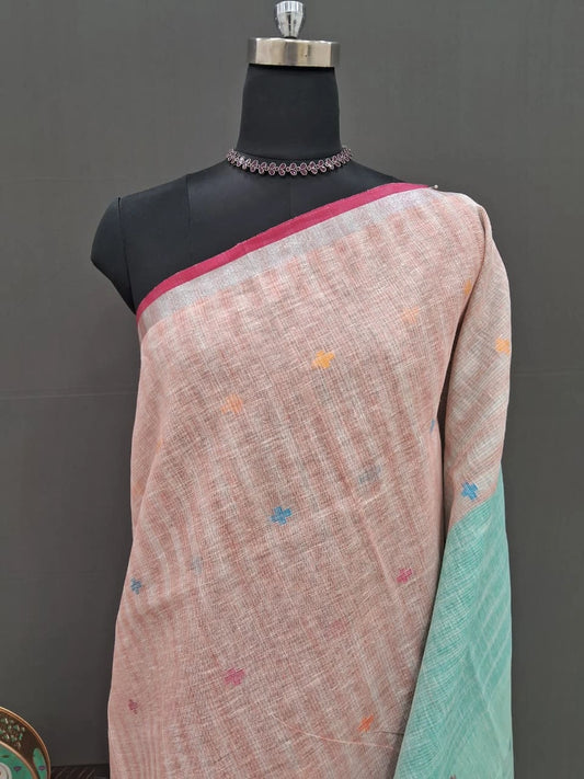 Peach Pure Linen Saree