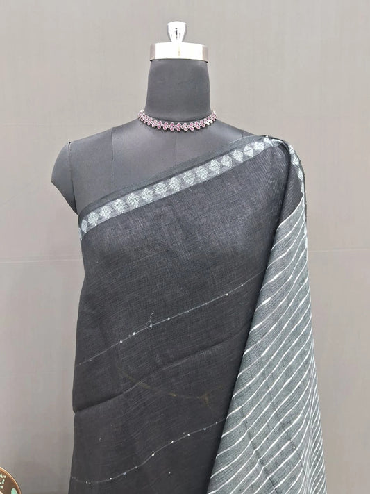 Black Pure Linen Saree