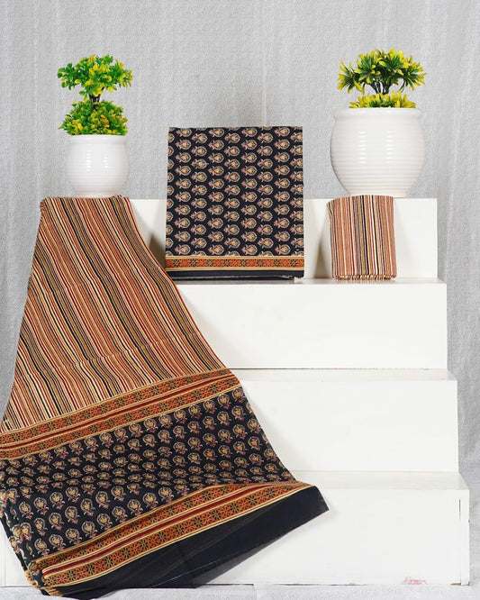 Black with Beige box printed cotton dress material
