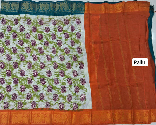White Sungudi cotton Saree
