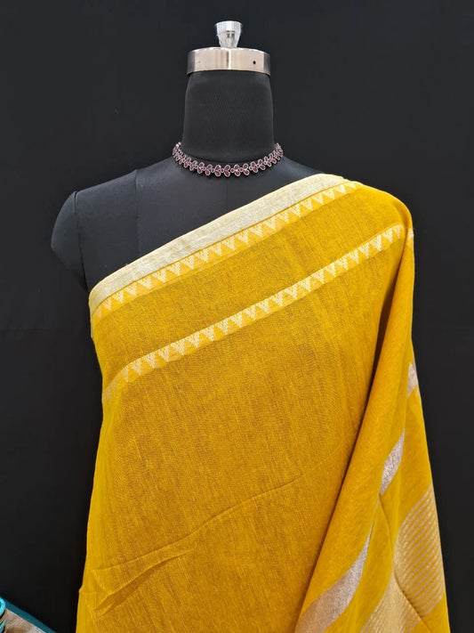 Yellow Khadi Tissue Linen Saree