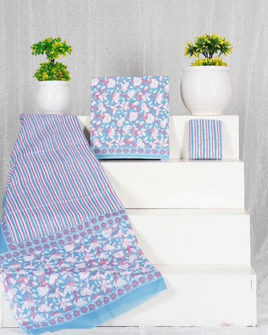 Aqua Blue with Mango Yellow and Pink floral printed cotton top
