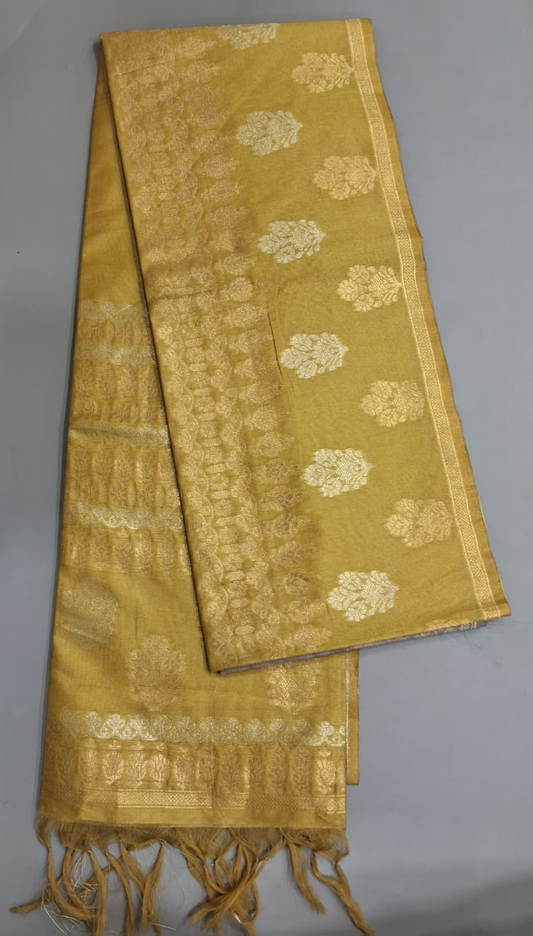 Shaded Mustard Yellow and Grey Tussar Saree