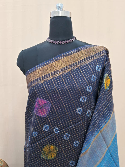 Timeless Chic Dark Blue Bamboo Silk Saree
