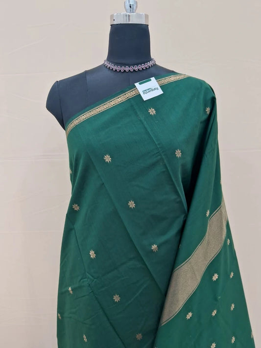 Elegant Bottle Green Semi Maheshwari Silk Saree for Festive Wear