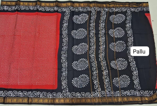 - Traditional Tie-Dye Technique: Each saree is tie-dyed by hand to create thousands of tiny white dots — a pattern that’s impossible to replicate by machine.