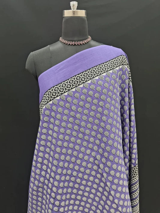 Lavender Bliss Mulmul Cotton Saree with White bandhini prints