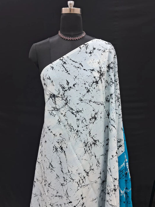 Aqua Blue Bandhani Printed Mulmul Cotton Saree