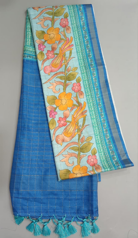 Aqua Blue Tussar Saree