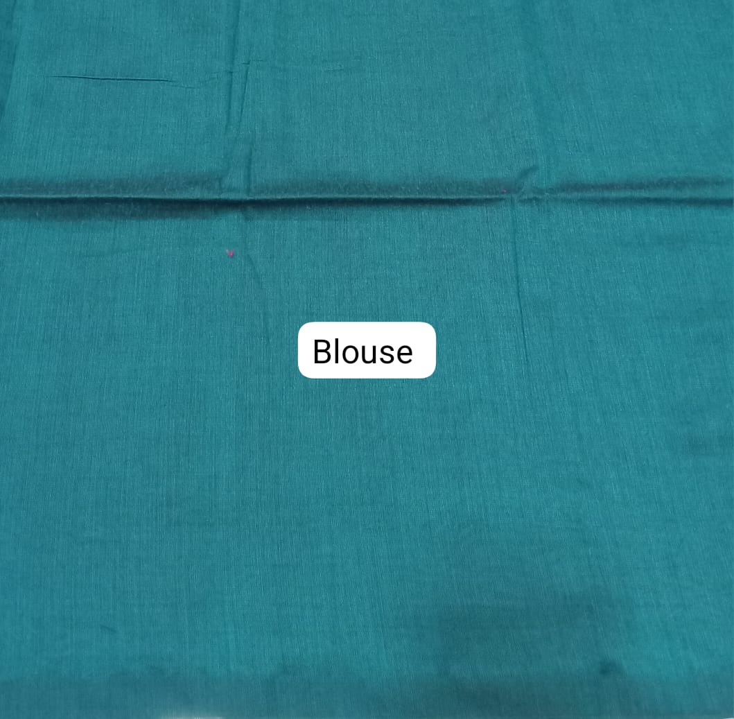 Bring effortless elegance to your wardrobe with this Red Khadi Cotton Saree, featuring a classic plain body for timeless appeal. The saree is beautifully contrasted with a striking teal blue pallu, enhanced by stylish red and aqua blue tassels for a chic finish. Paired with a plain teal blue blouse, this saree is perfect for both casual outings and festive occasions.