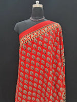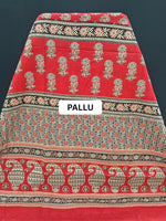 Red and grey Floral Mulmul Cotton Saree