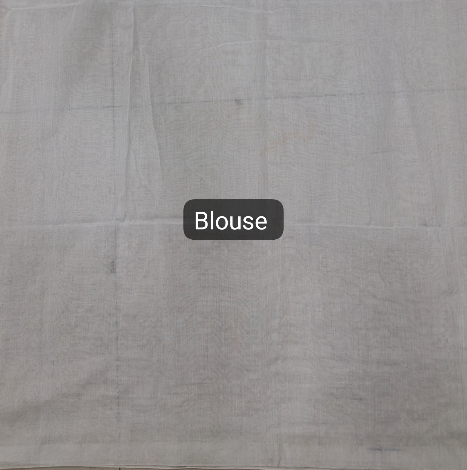 White Khadhi Cotton Saree with orange heart embroidered bhuttis on the saree matched with a white selve edge border.The saree comes with a plain running blouse .